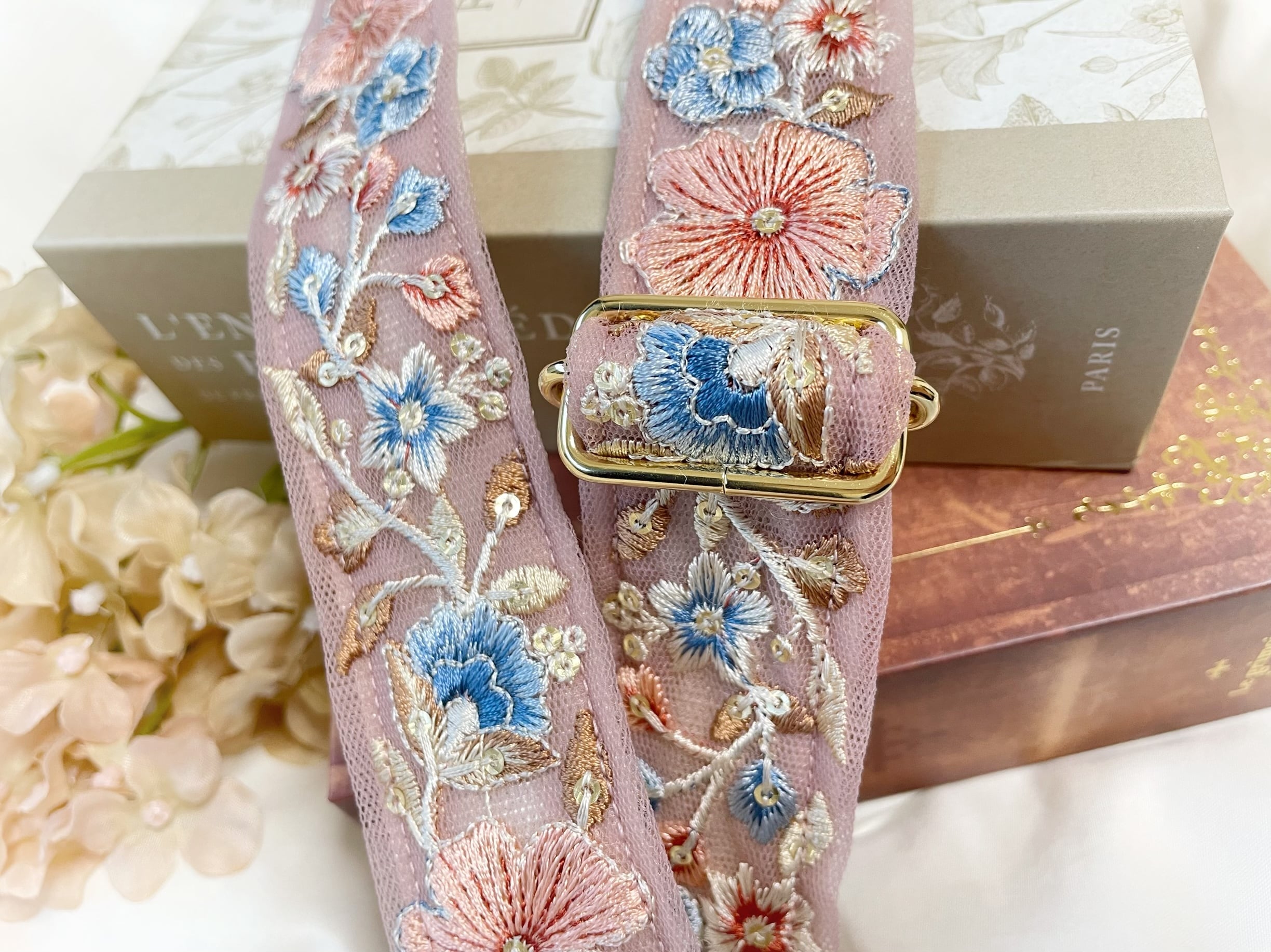対照的なピンクと水色も刺繍リボンでは